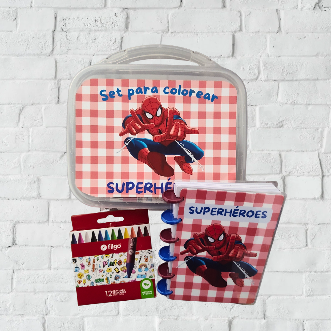 1 cuadernito A6 (11x15 CM) con dibujos para colorear según la temática de la valija + hojas lisas para dibujar + 12 crayones de colores filgo