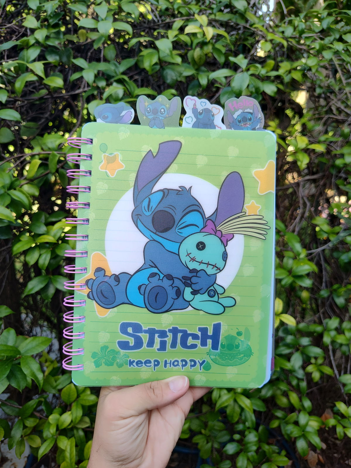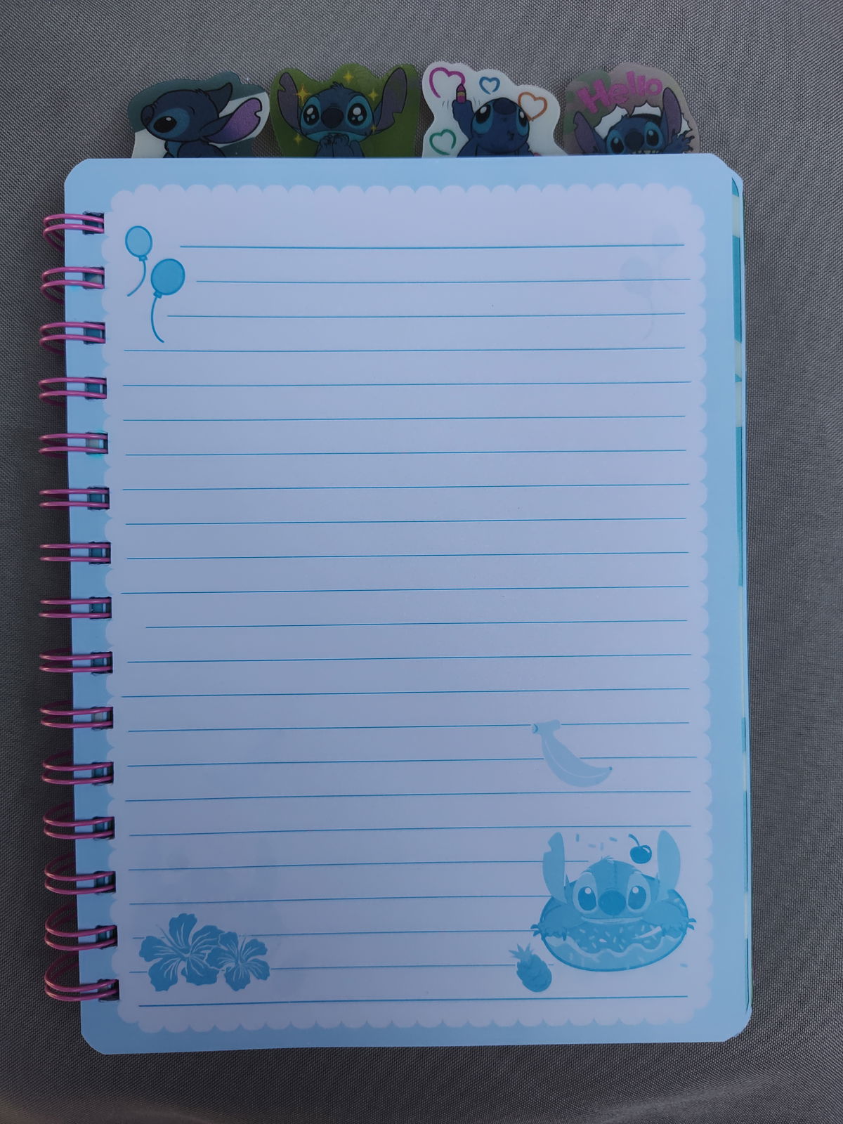 Contiene hojas rayadas divididas por separadores plásticos con dibujos