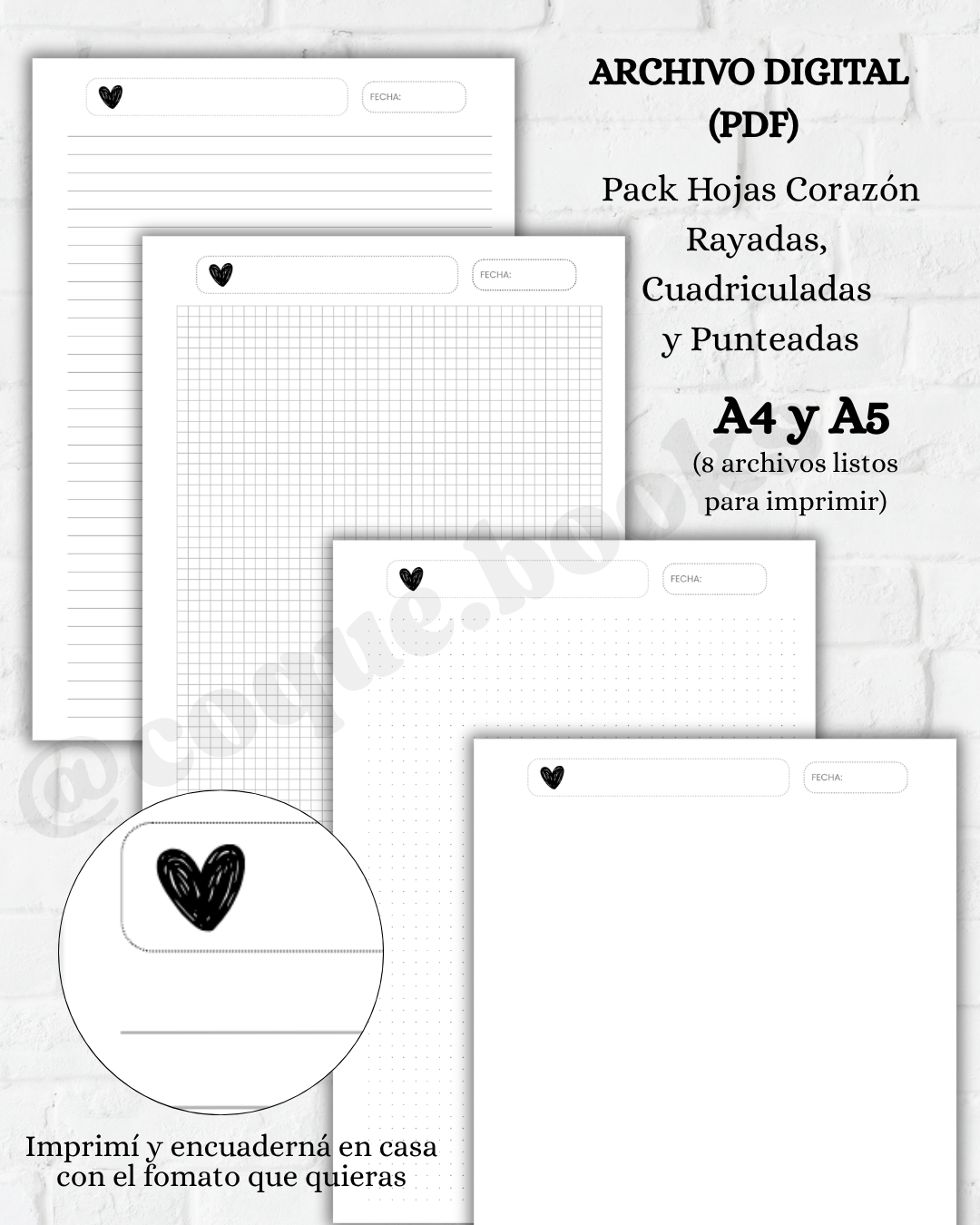 Pack de 8 archivos digitales imprimibles en formato PDF (no editables)