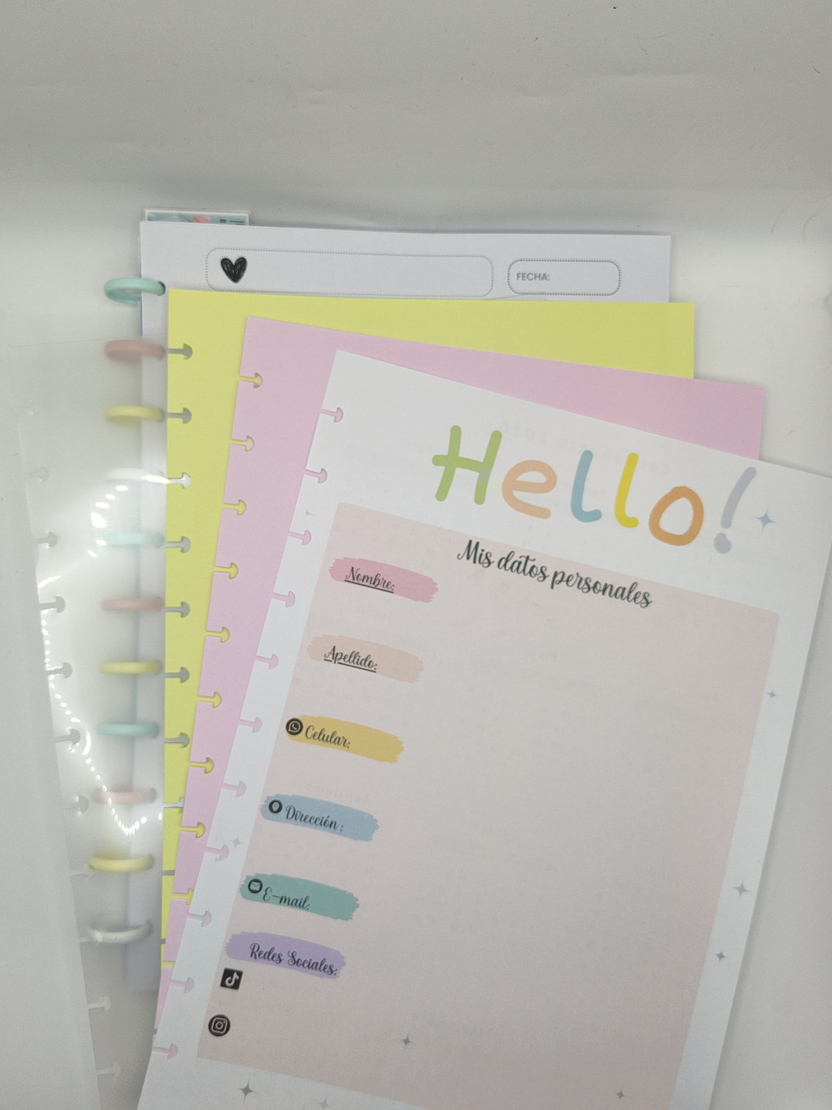 • 4 separadores pasteles lisos (rosa, amarillo, celeste, verde)
