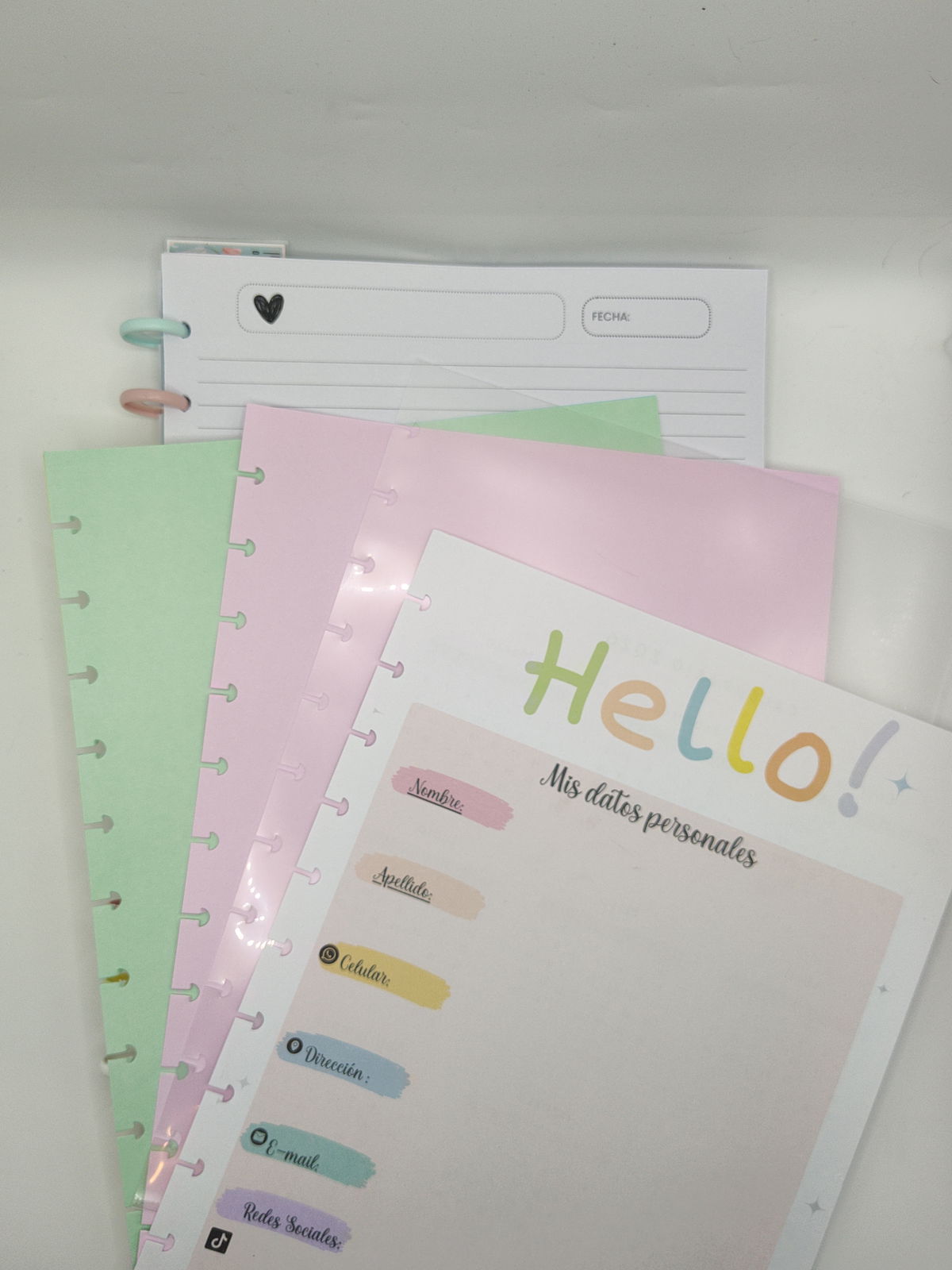 2) 120 HOJAS TAPAS DURAS (1 mm) - Discos grandes (32 mm) - contiene 4 separadores pasteles