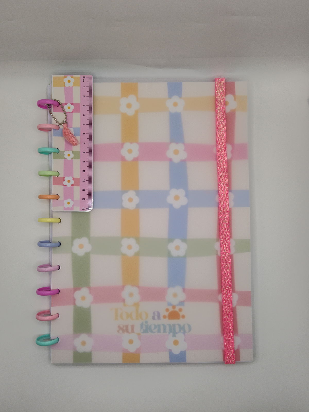 Las tapas del cuaderno son de plástico esmerilado y debajo de éstas, se encuentra el diseño impreso en papel fotográfico de 230 g.