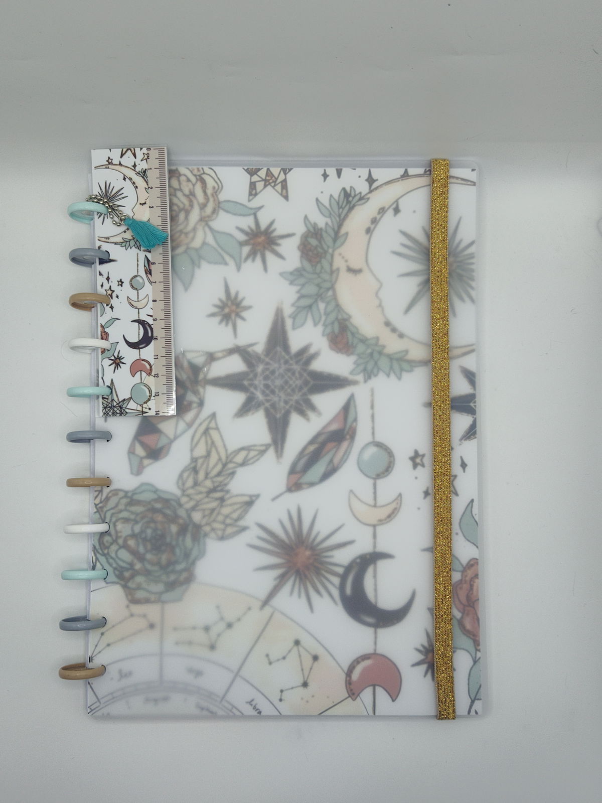 Las tapas del cuaderno son de plástico esmerilado y debajo de éstas, se encuentra el diseño impreso en papel fotográfico de 230 g.