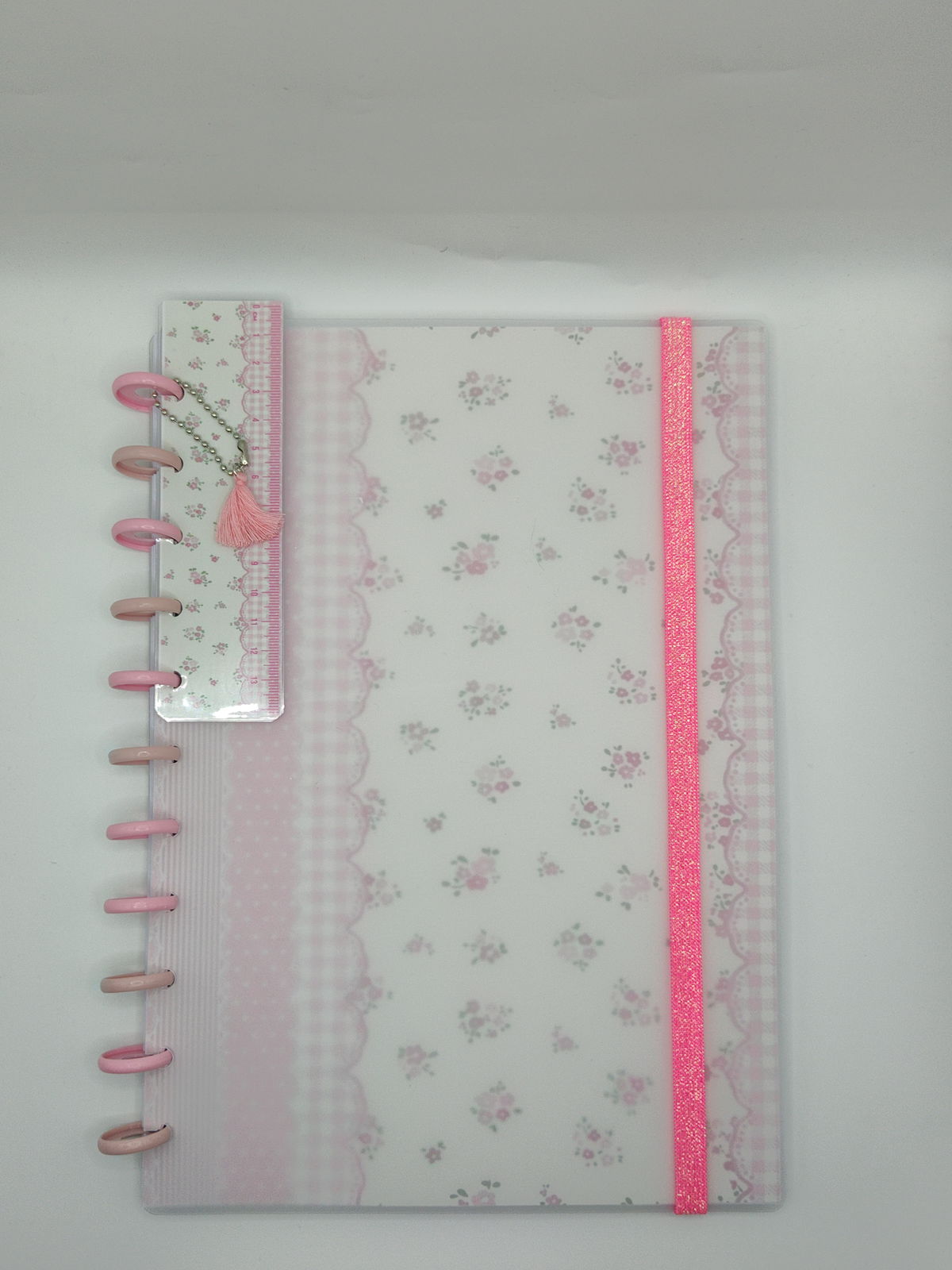 Las tapas del cuaderno son de plástico esmerilado y debajo de éstas, se encuentra el diseño impreso en papel fotográfico de 230 g.
