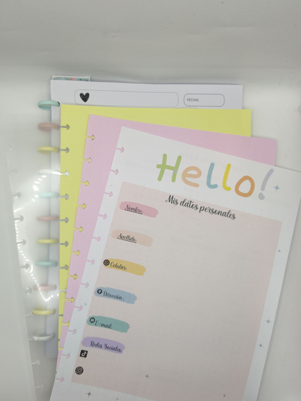 2) 120 HOJAS TAPAS DURAS (1 mm) - Discos grandes (32 mm) - contiene 4 separadores pasteles