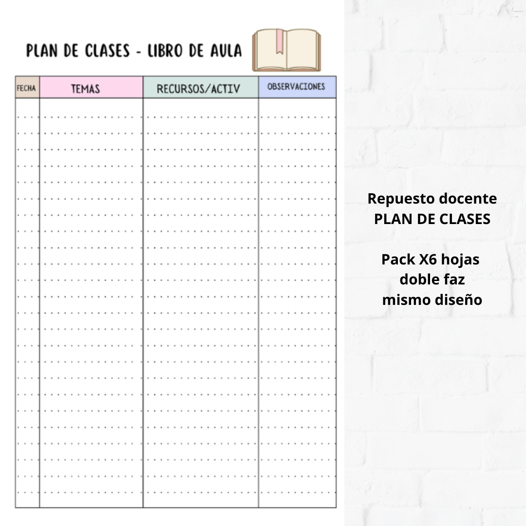 Repuesto Docente - plan de clases x6