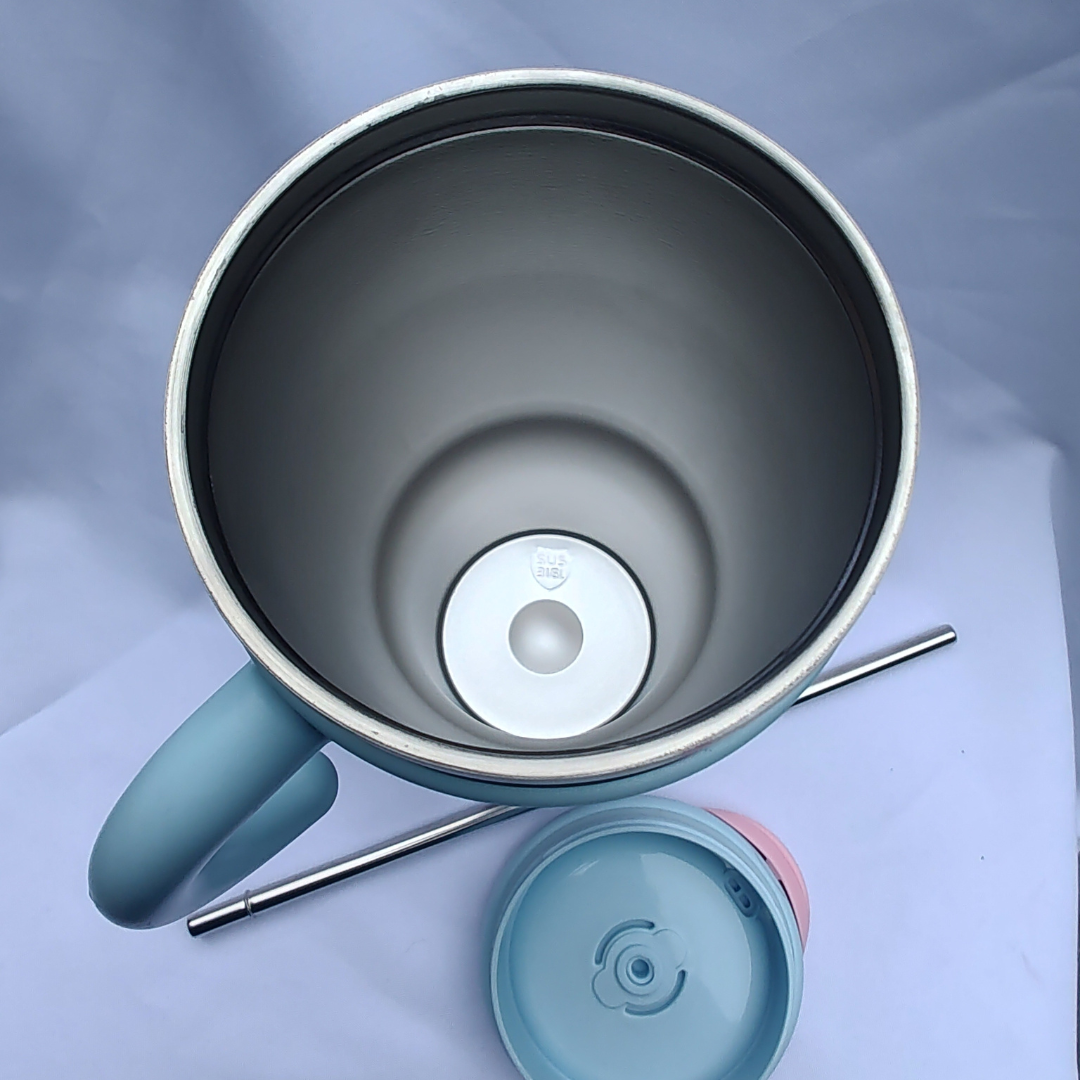 Tapa a rosca con 2 posiciones: una abertura para colocar sorbete de acero con capa de silicona (incluido) , boca para bebidas calientes con cierre