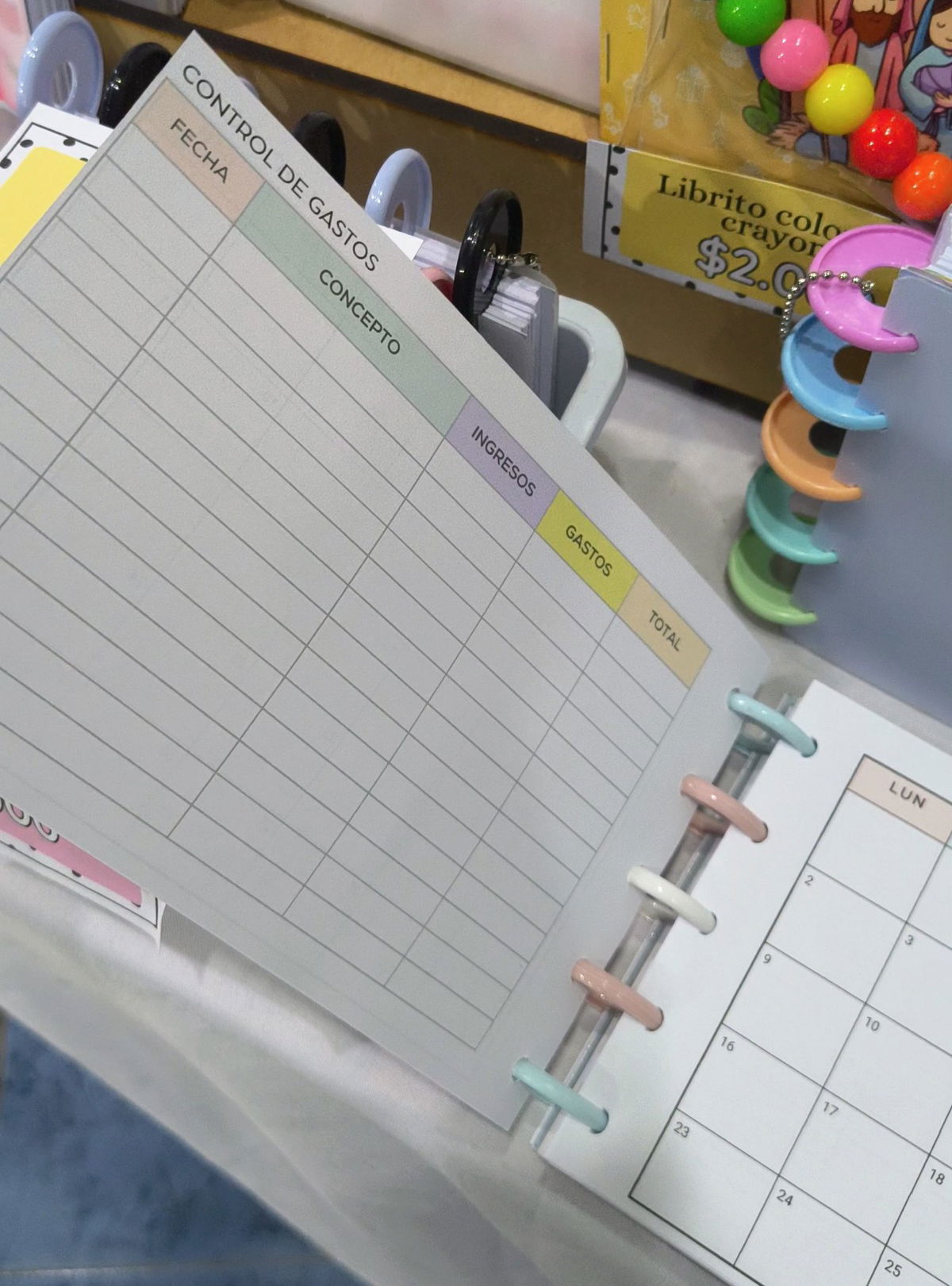 12 hojas de Calendario planner 2026 por mes con control de gastos en la parte de atrás