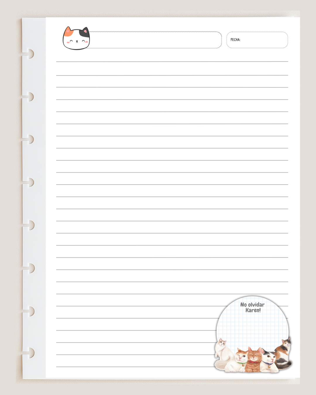 Repuesto Hojas Rayadas - GATITOS