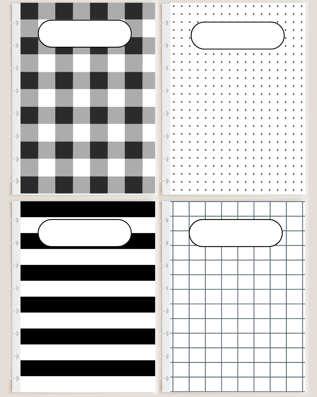 Pack x4 Separadores/Carátulas - Negro y blanco