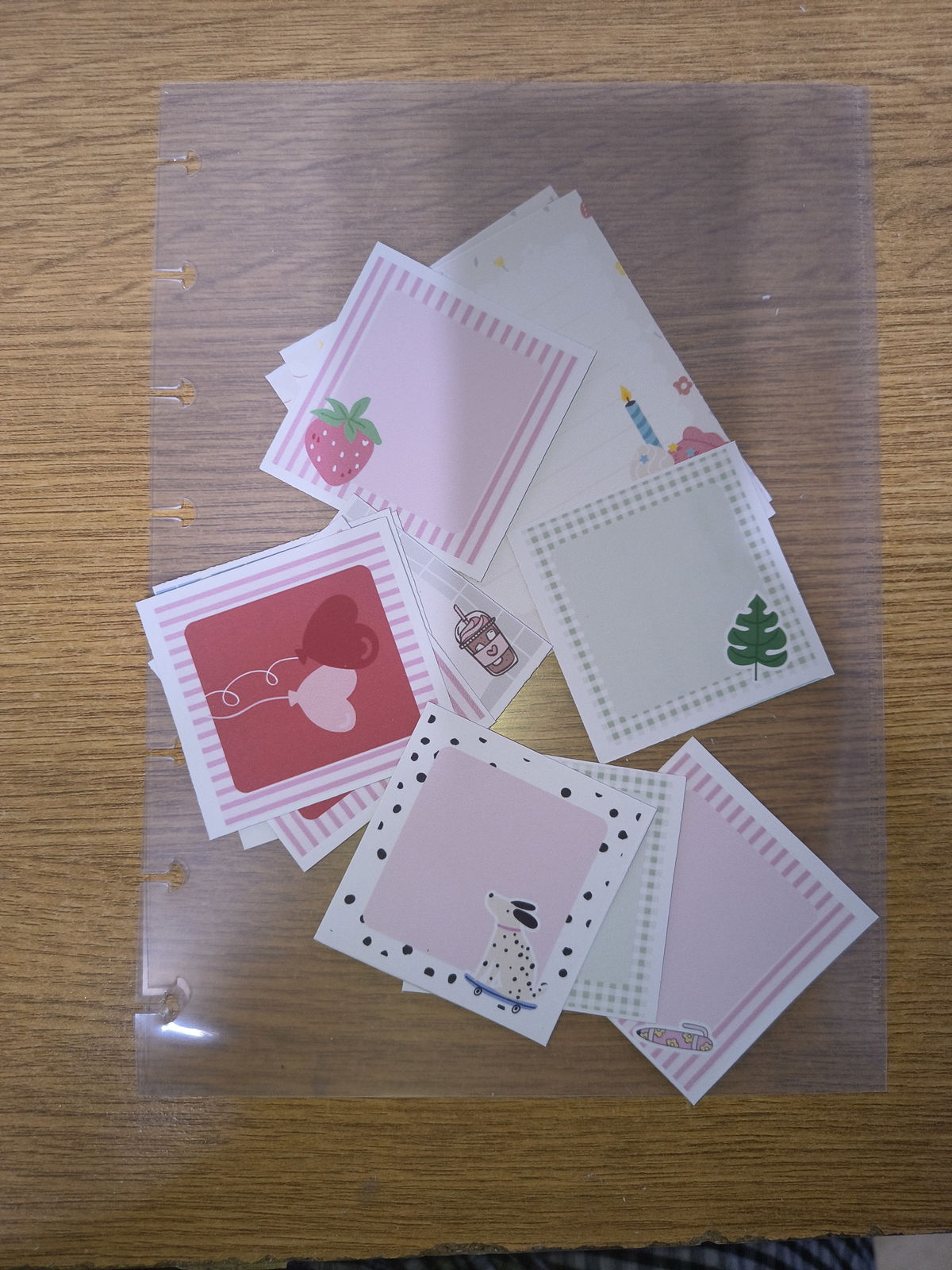 - Sobre plástico con mini etiquetitas adhesivas para notas