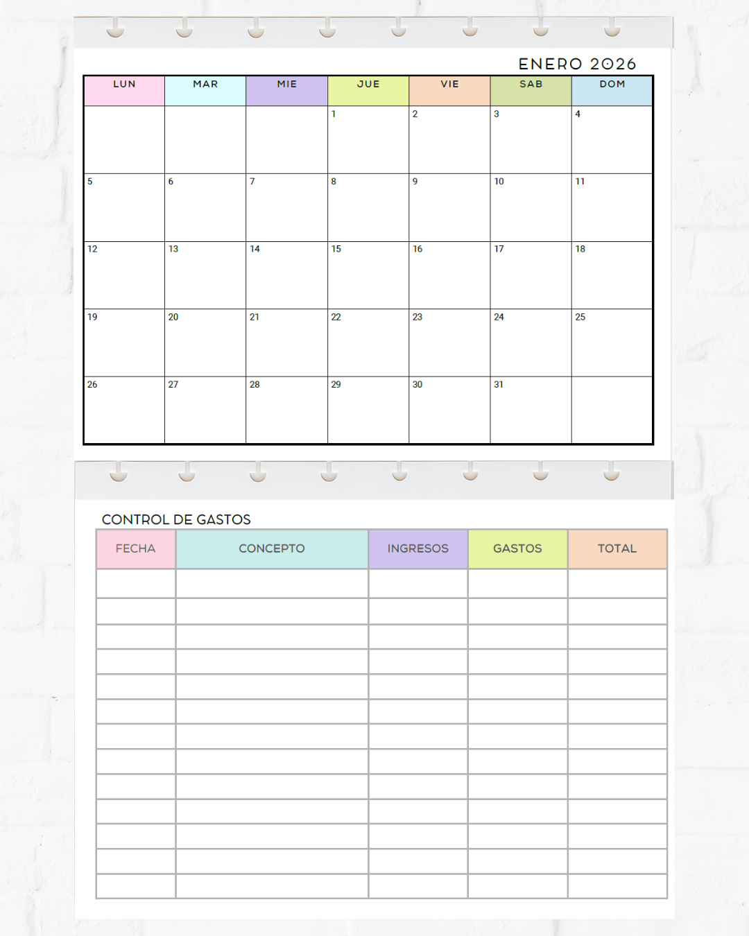 Frente: planner mensual fechado de enero a diciembre (12 hojas) - vista horizontal