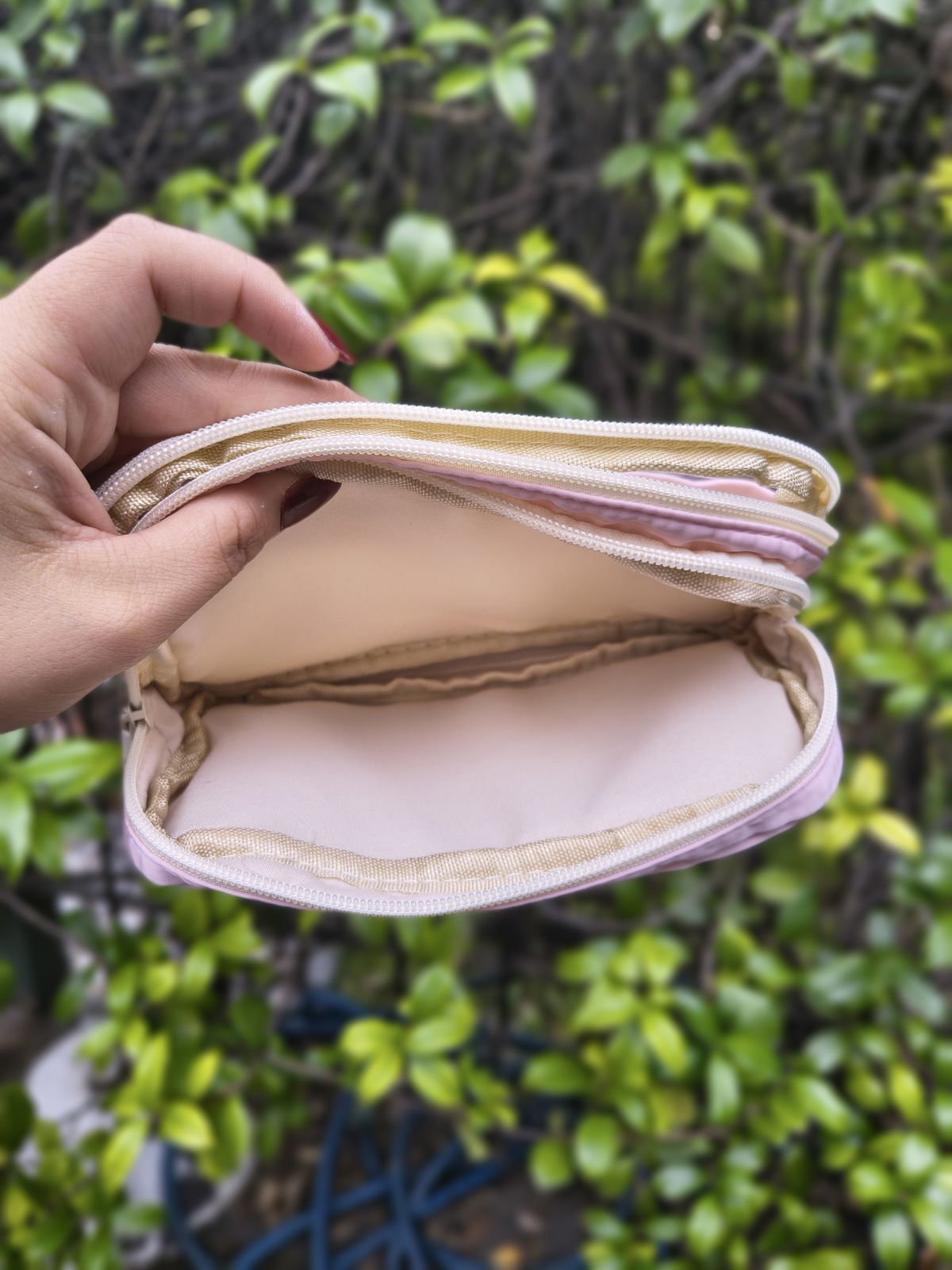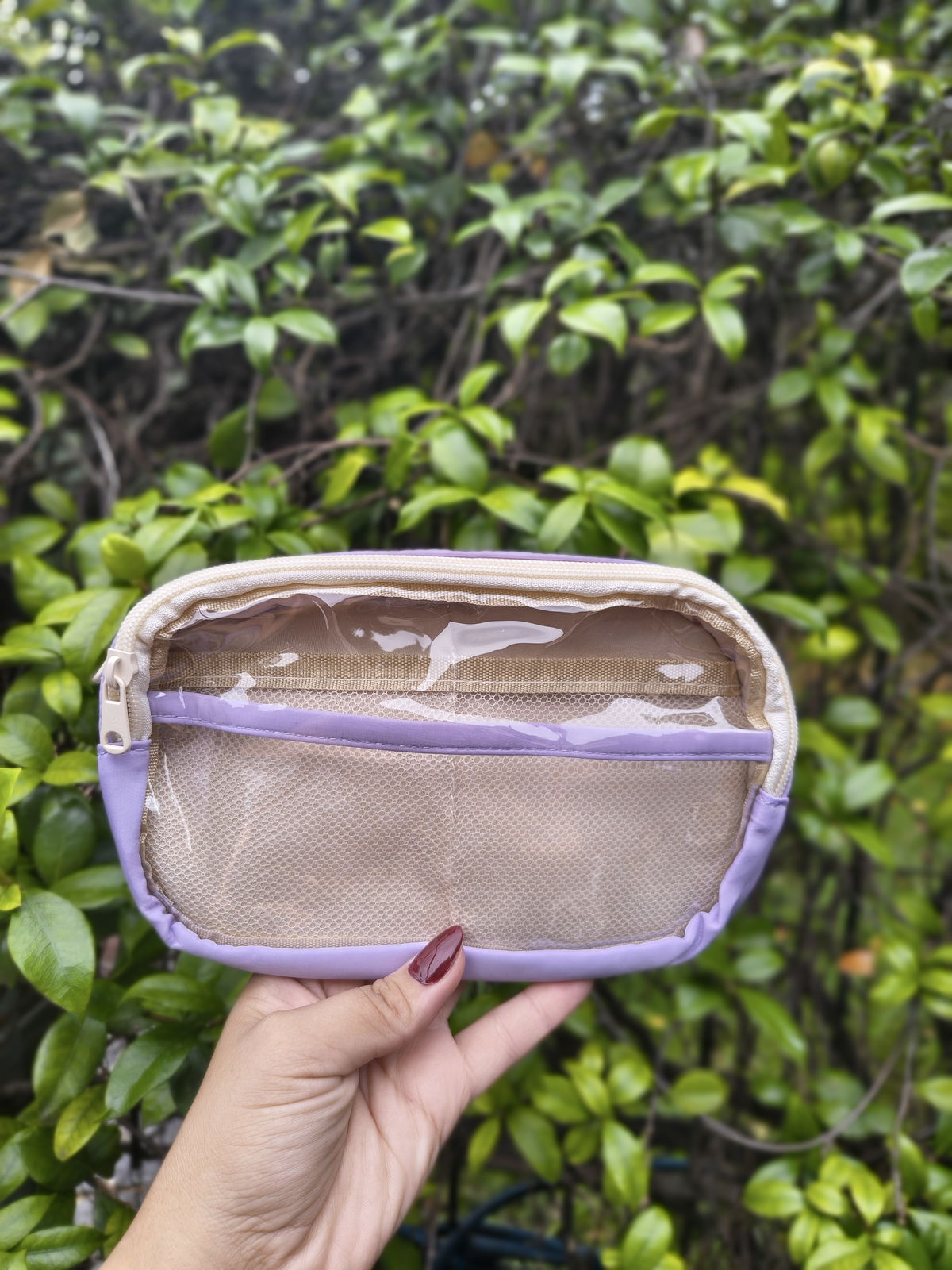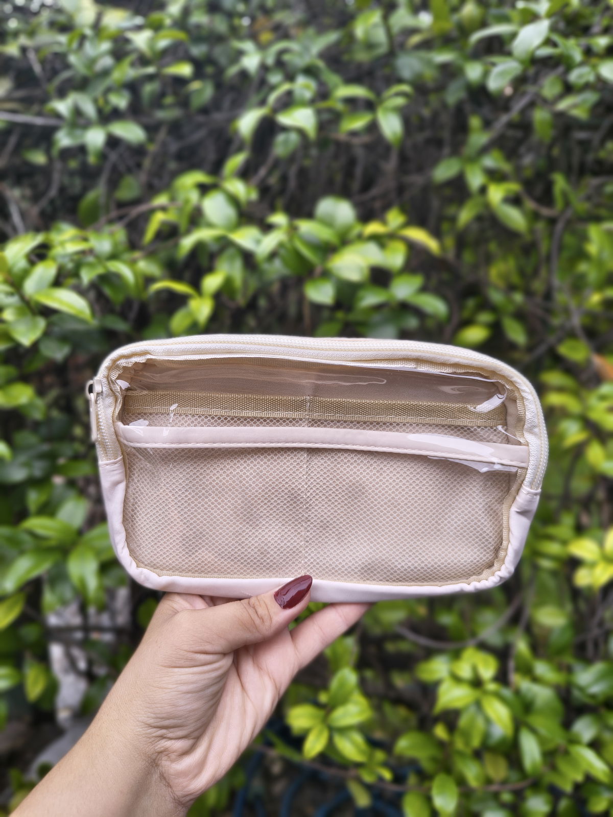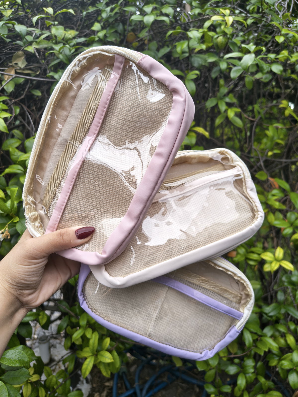 2 bolsillos con cierre , uno a su vez tiene 3 separadores: 2 de red, 1 de pvc