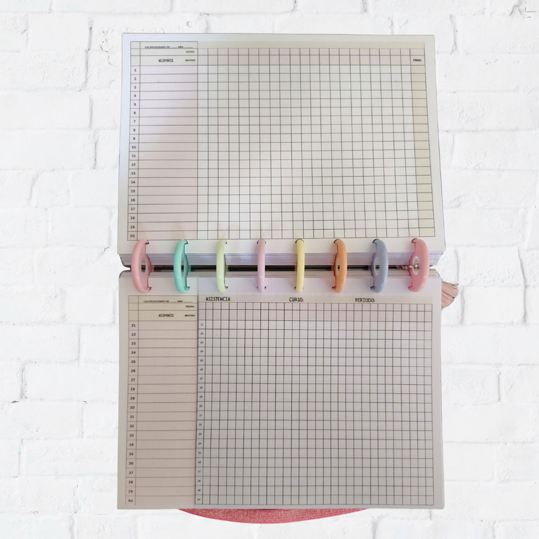 Incluye 1 calificador (cada calificador viene con 4 hojas de asistencia dentro y 2 separadores de colores para dividir por cuatrimestres - hojas cortadas para no repetir los nombres)