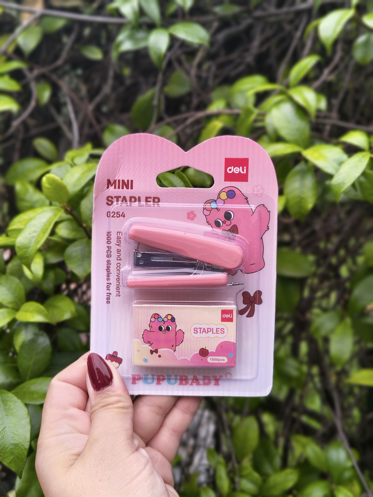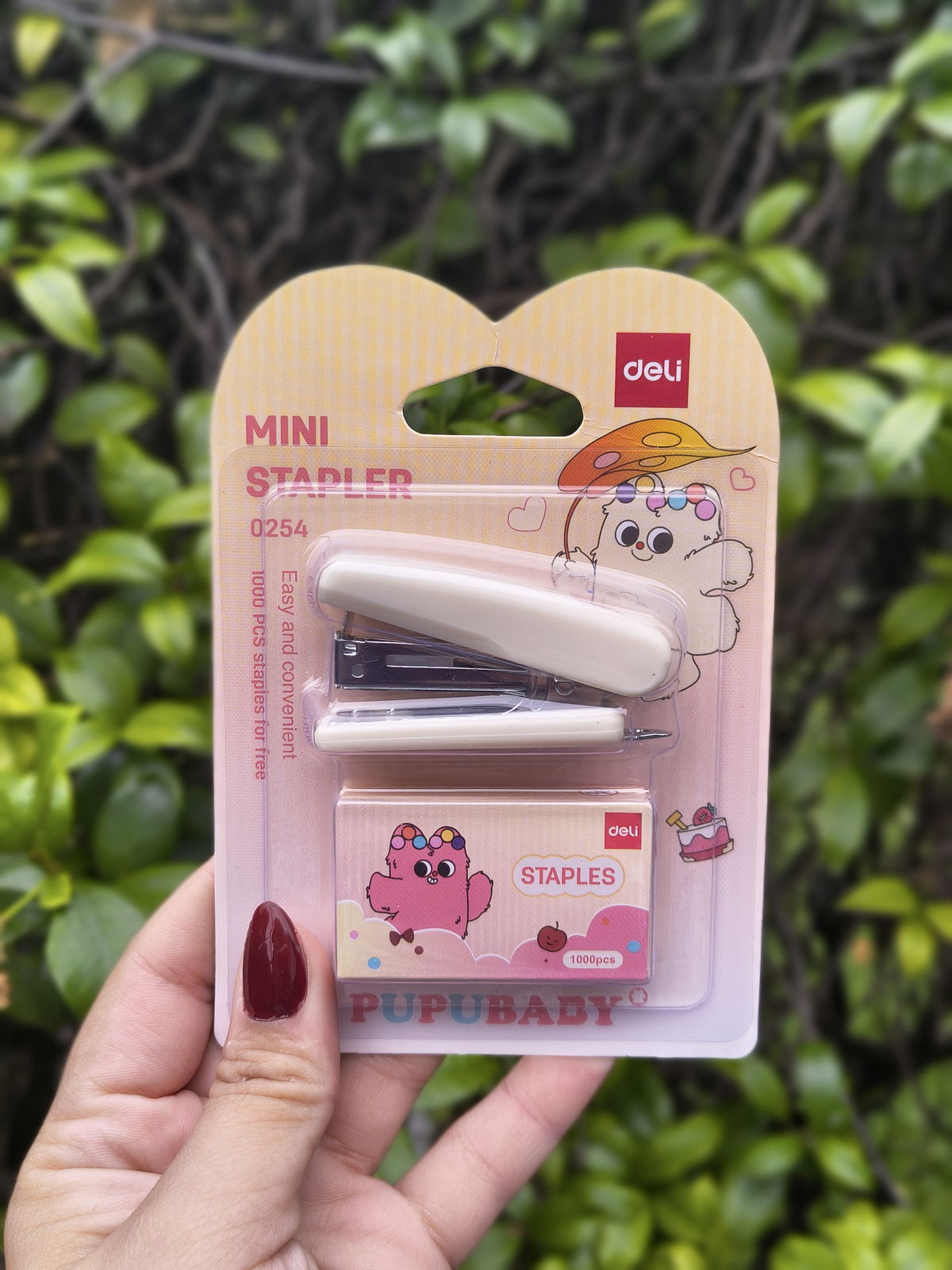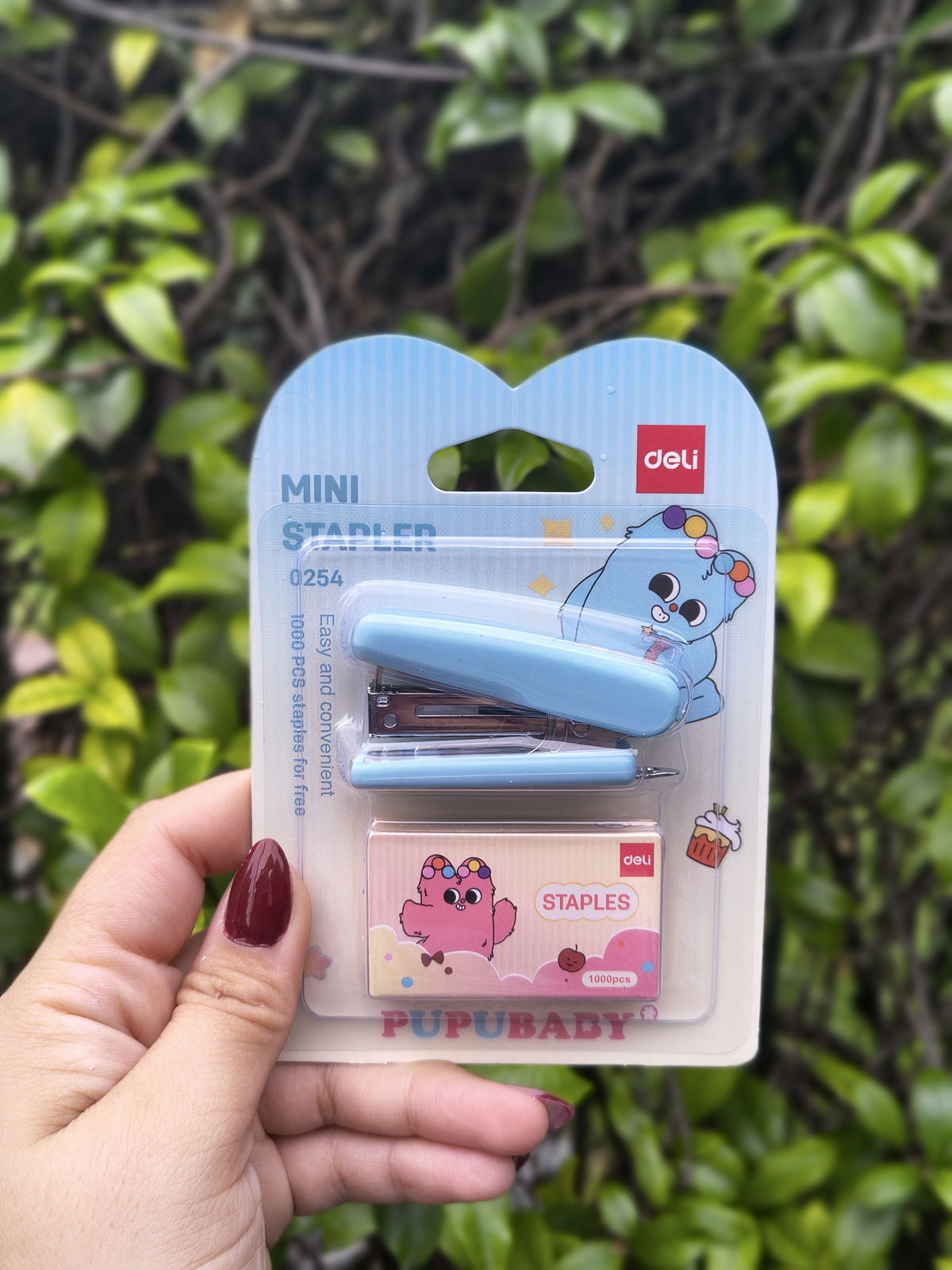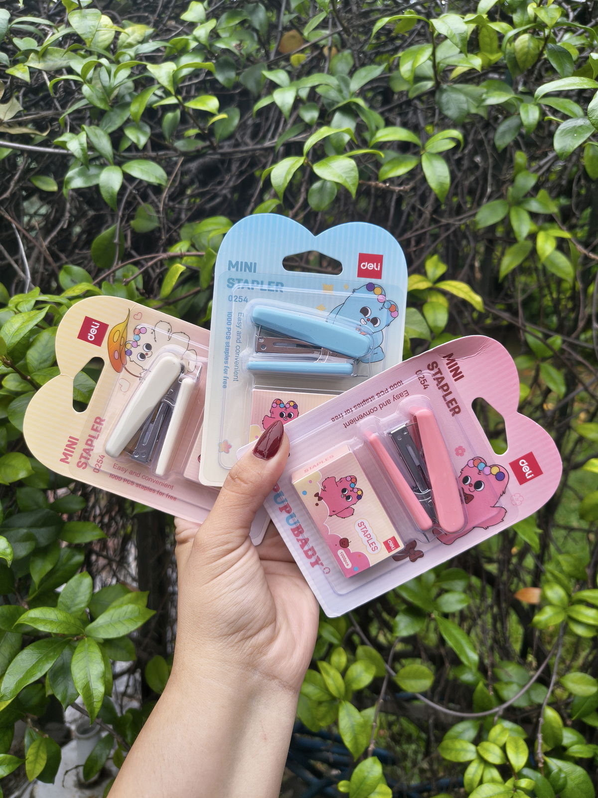 Mini abrochadora Deli - incluye cajita con ganchitos