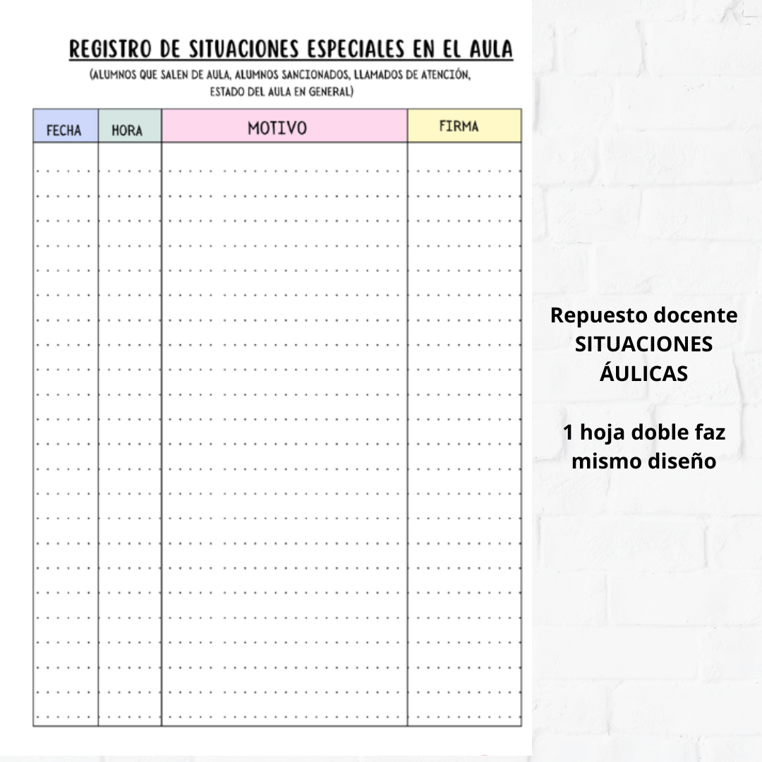 Situaciones áulicas (registro de alumnos que salen al baño, que se les llama la atención, etc)