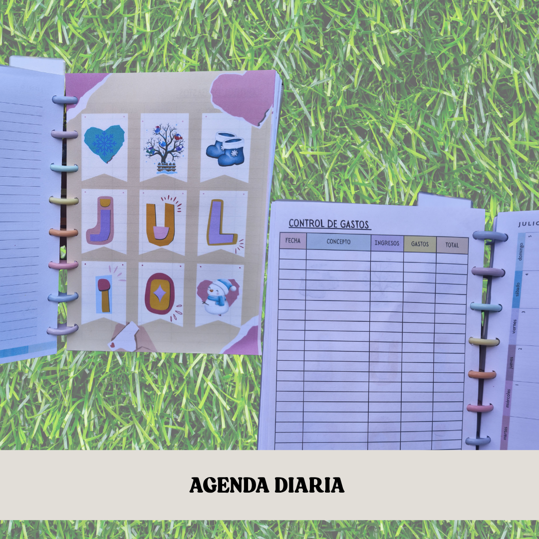 -Planner mensual de enero a diciembre (vista en 2 hojas para los interiores semanales, vista en una hoja para el interior diario)