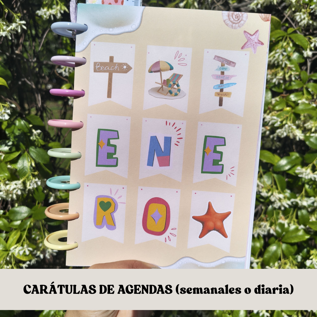 -Carátulas full color para cada uno de los meses (enero a diciembre) - hojas de 120 g para los interiores semanales, hojas de 90 g para el interior diario.