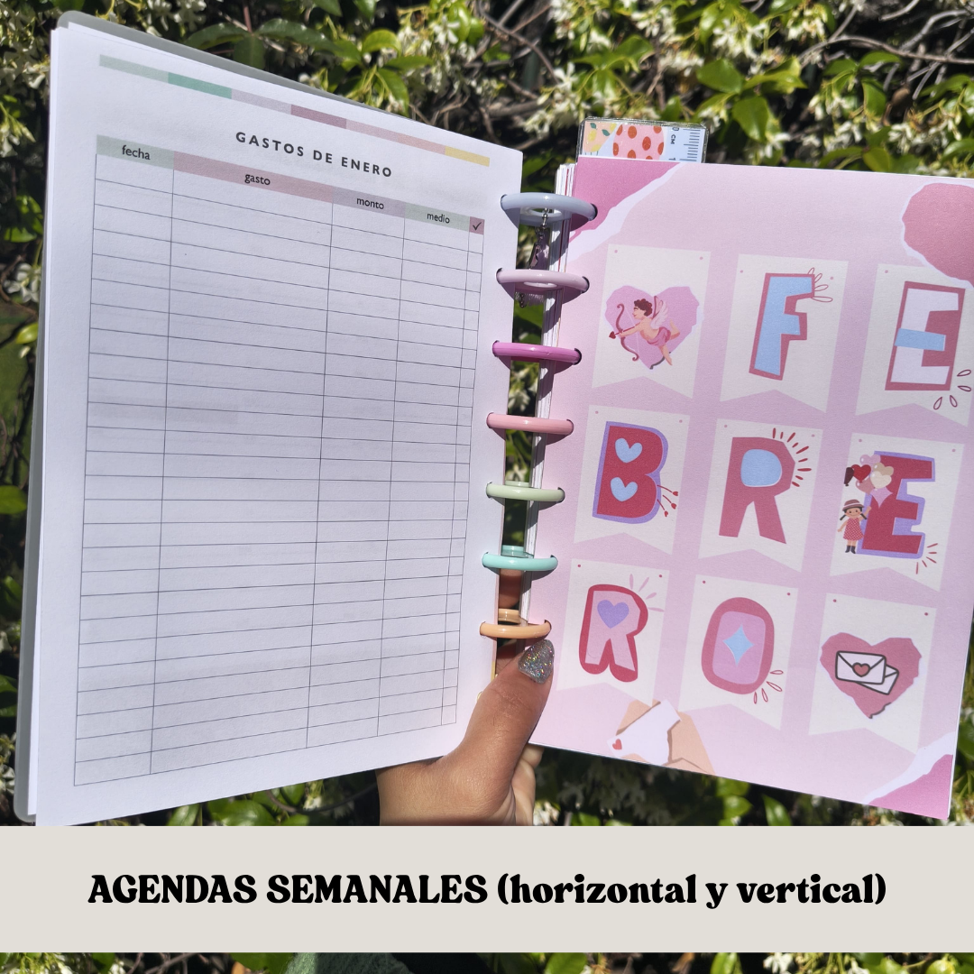 -Planner mensual de enero a diciembre (vista en 2 hojas para los interiores semanales, vista en una hoja para el interior diario)